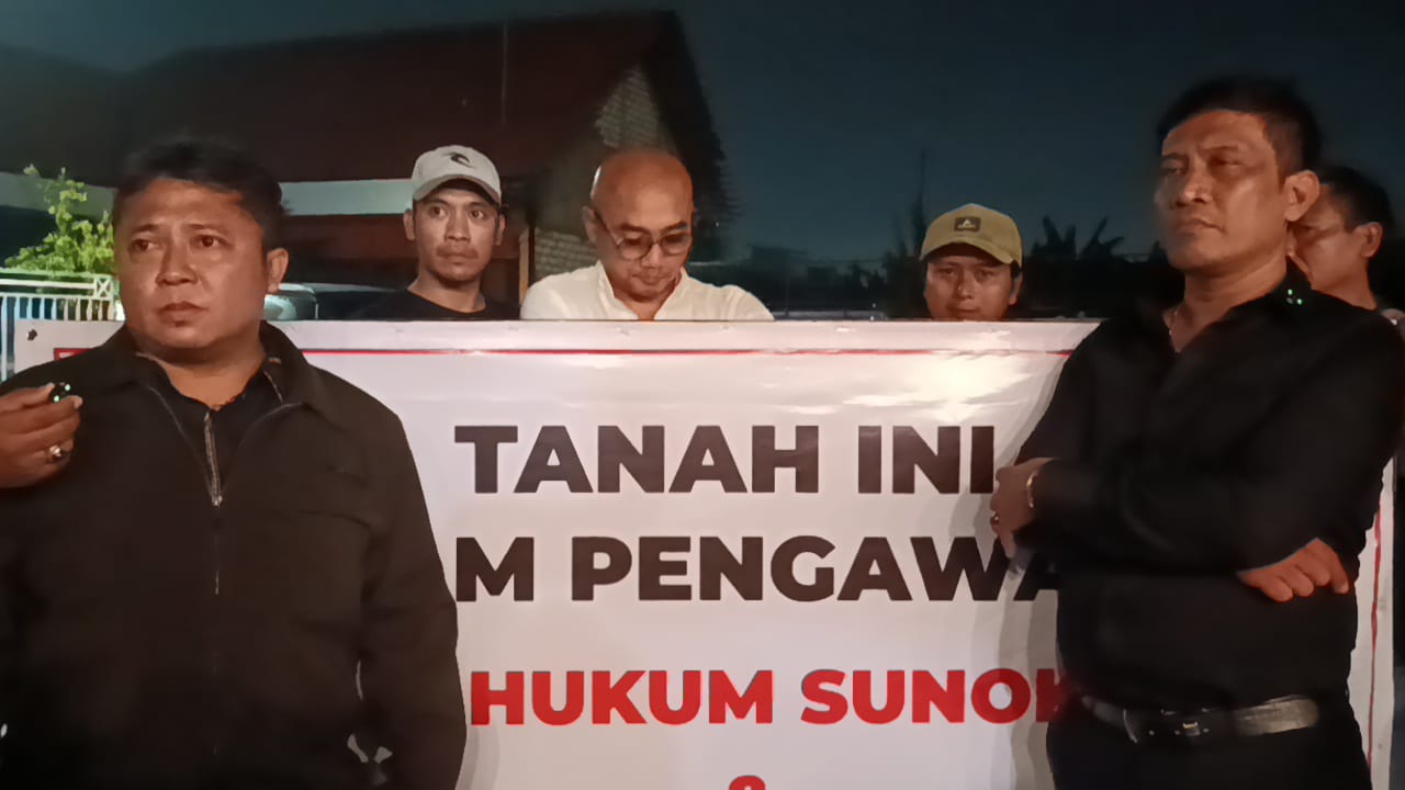 Tim kuasa hukum dari Klinik Hukum Sunoko dan Kantor Hukum Budiyanto mendampingi para ahli waris almarhum Mukelar P. Tilam dalam pemasang plang penanda hak kepemilikan tanah di Jalan Pogot Nomor 57–58, Kelurahan Tanah Kali Kedinding, Kecamatan Kenjeran, Kota Surabaya. Kegiatan ini dilakukan pada Selasa malam (23/12/2025).