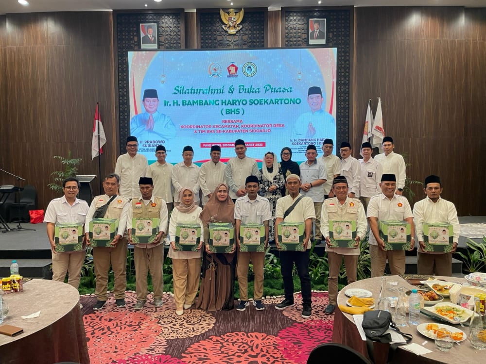 Anggota DPR RI dari Fraksi Partai Gerindra, Bambang Haryo Soekartono (BHS), menggelar acara silaturahmi sekaligus buka puasa bersama tim pemenangan tingkat kecamatan dan desa, serta pengurus DPC dan PAC Partai Gerindra se-Kabupaten Sidoarjo, Sabtu (22/3).