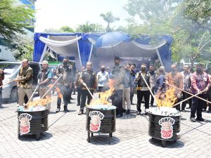 Total lebih dari 5,3 juta batang rokok ilegal dan 49 liter minuman mengandung etil alkohol (MMEA) atau miras dimusnahkan. Pemusnahan dilakukan dengan metode pembakaran dan disaksikan secara daring dari GKN I Surabaya.