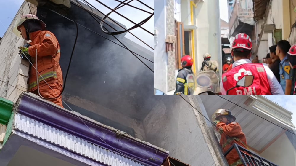 Kebakaran melanda diduga akibat Konsleting listrik akibatnya bergotong royong untuk memadamkan api dengan alat sederhana timba dan selang.